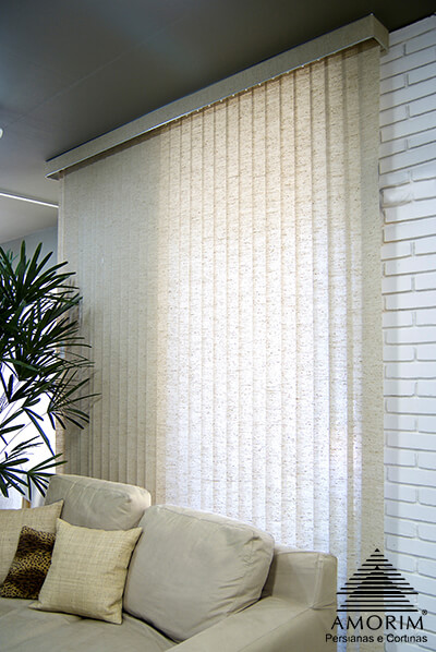 Com um estilo todo diferente, a persiana vertical impede a entrada de luz em determinados ambientes preservando os moveis externos do local.